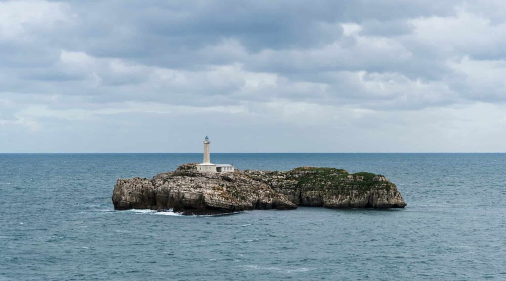 El faro de Mouro, uno de los símbolos más reconocibles de Santander, se alza sobre el mar Cantábrico frente a la costa de la ciudad.