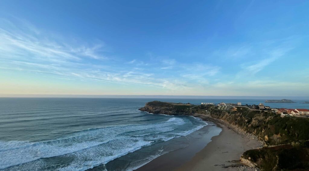 Vista del litoral de Santander al atardecer, con sus playas y acantilados bañados por la luz suave del norte.
